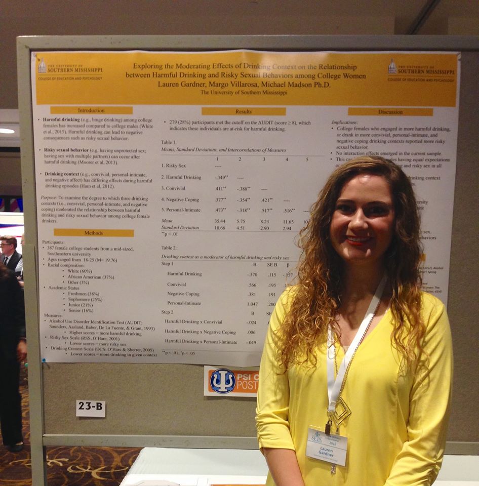 Lauren recently represented Southern Miss at the Southeastern Psychological Association (SEPA) in New Orleans. She even won a regional award for her research!